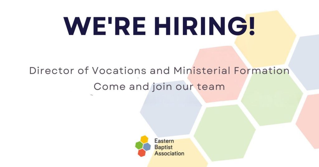 DIRECTOR OF VOCATIONS & MINISTERIAL FORMATION ROLE OUTLINE Introduction: The Eastern Baptist Association (EBA) is a group of 172 churches and communities drawn together from the counties of Essex, Suffolk, Norfolk, and Cambridgeshire. Our vision is ‘Growing healthy churches in relationship for God’s mission in the East of England’. By working together, we hope […]