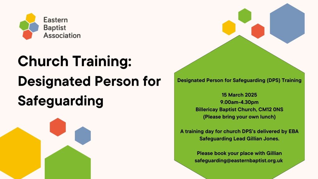 Please book your place with Gillian on safeguarding@easternbaptist.org.uk