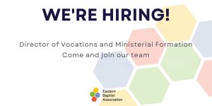 DIRECTOR OF VOCATIONS & MINISTERIAL FORMATION ROLE OUTLINE    Introduction: The Eastern Baptist Association (EBA) is a group of 172 churches and communities drawn together from the counties of Essex, Suffolk, Norfolk, and Cambridgeshire.  Our vision is ‘Growing healthy churches in relationship for God’s mission in the East of England’. …